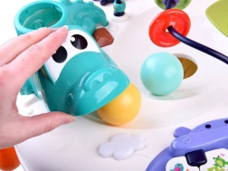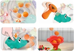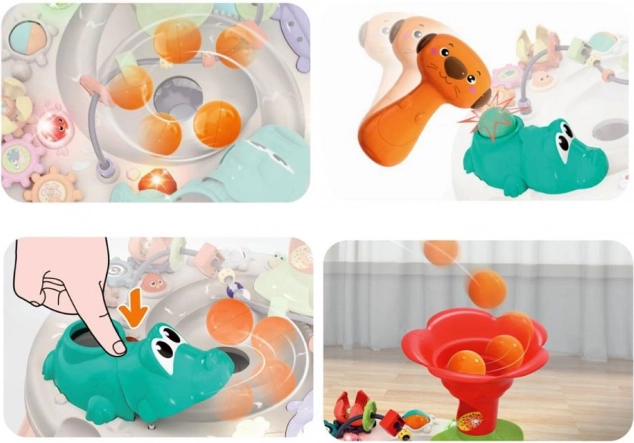 - Krokodil met hamertje: de kogel op zijn rug is leuk om met het hamertje door te prikken, wat licht- en geluidseffecten veroorzaakt.