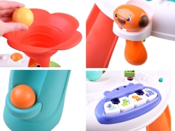 - Muzikale diertjes: het nijlpaard-klavier speelt toonladders en dierengeluiden zoals vogeltje, kikker, eendje, olifantje.