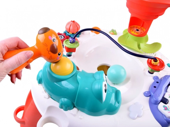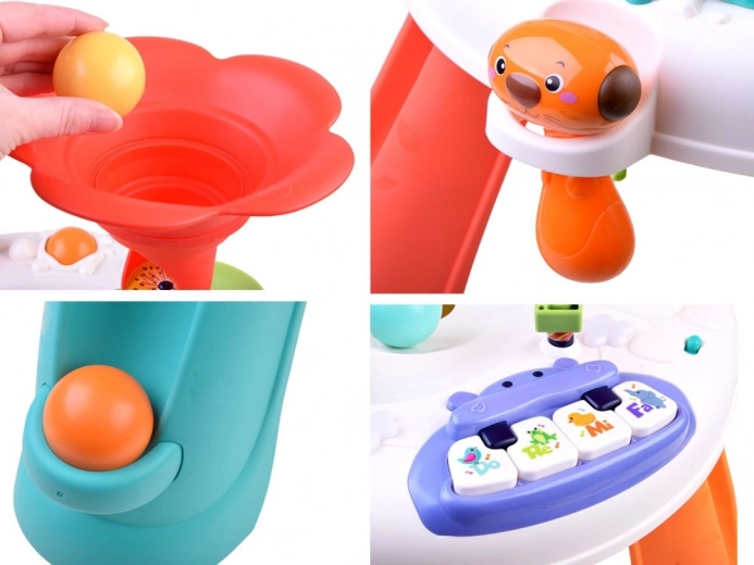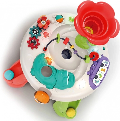 De interactieve kindertafel is uitgerust met diverse elementen die de zintuiglijke en motorische ontwikkeling ondersteunen. Met geluiden, licht en beweging trekt hij de aandacht van kinderen en houdt hij ze bezig.