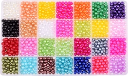 Creëer uw unieke sieraden met onze kralenset, die perfect geschikt is voor het maken van kettingen, oorbellen of ringen. De kralen hebben een glad oppervlak dat licht weerkaatst en licht glinstert. Ze zijn verkrijgbaar in een breed scala aan kleuren, van klassiek wit, pastelkleuren zoals roze, blauw, groen tot intense kleuren als paars, rood of groen.