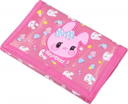 Stijlvolle meisjesportemonnee van Keyroad van duurzaam stof die verrast met kleurrijke motieven en een praktische uitvoering. Hij heeft een betrouwbare klittenbandsluiting, compacte afmetingen voor kinderhanden en is verkrijgbaar in 3 vrolijke designs – aardbei, donut en konijntje.