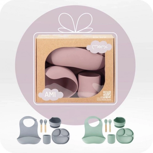 Siliconen eetset voor kinderen MoMi AMI roze