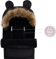 De MoMi wintervoetenzak is eenvoudig in gebruik – hij heeft een rits waarmee je je kind gemakkelijk in de slaapzak legt. Hij heeft universele kleuren die bij andere baby-accessoires passen. De voering is van kunstbont en de schattige, decoratieve oortjes geven het product karakter. De kunstbontvoering is afneembaar.