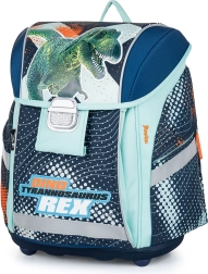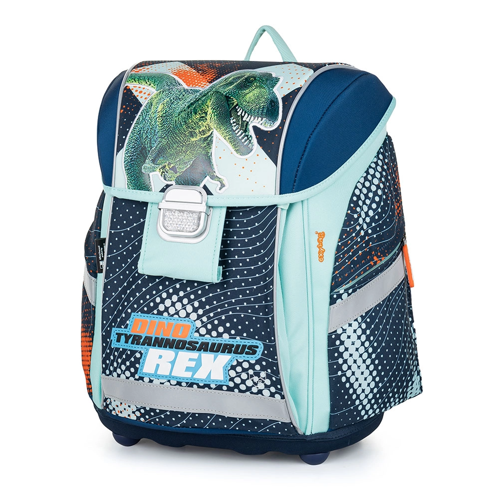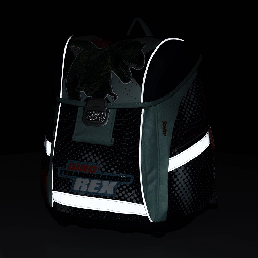 De Premium Light schoolsset dinosaurus is een ideale keuze voor de onderbouw van de basisschool. De lichte schooltas van slechts 900 g ontziet de rug en biedt dankzij het ergonomische, ademende rugpand en de brede, gewatteerde schouderbanden comfortabel en stabiel draaggemak. Aantrekriemen en een borstriem helpen bij de juiste gewichtsverdeling, terwijl reflecterende elementen de zichtbaarheid van het kind vergroten.