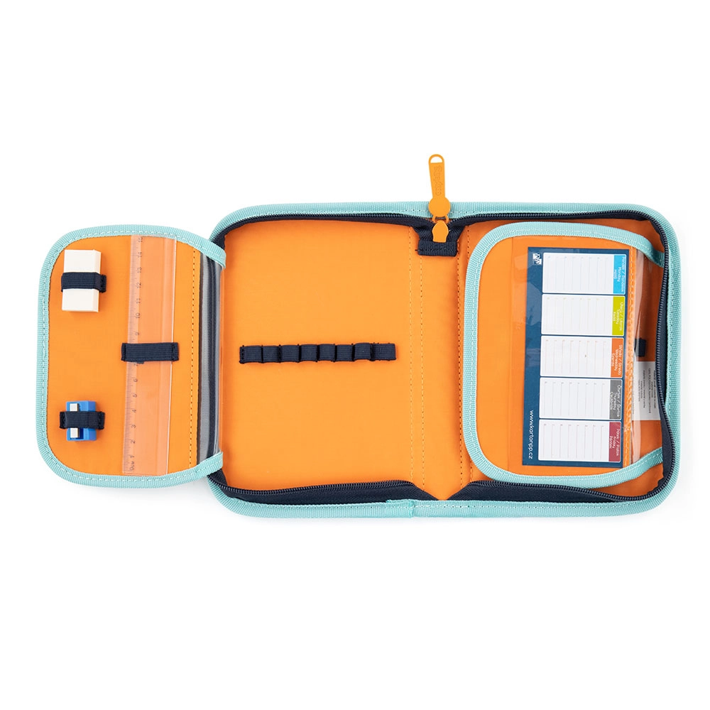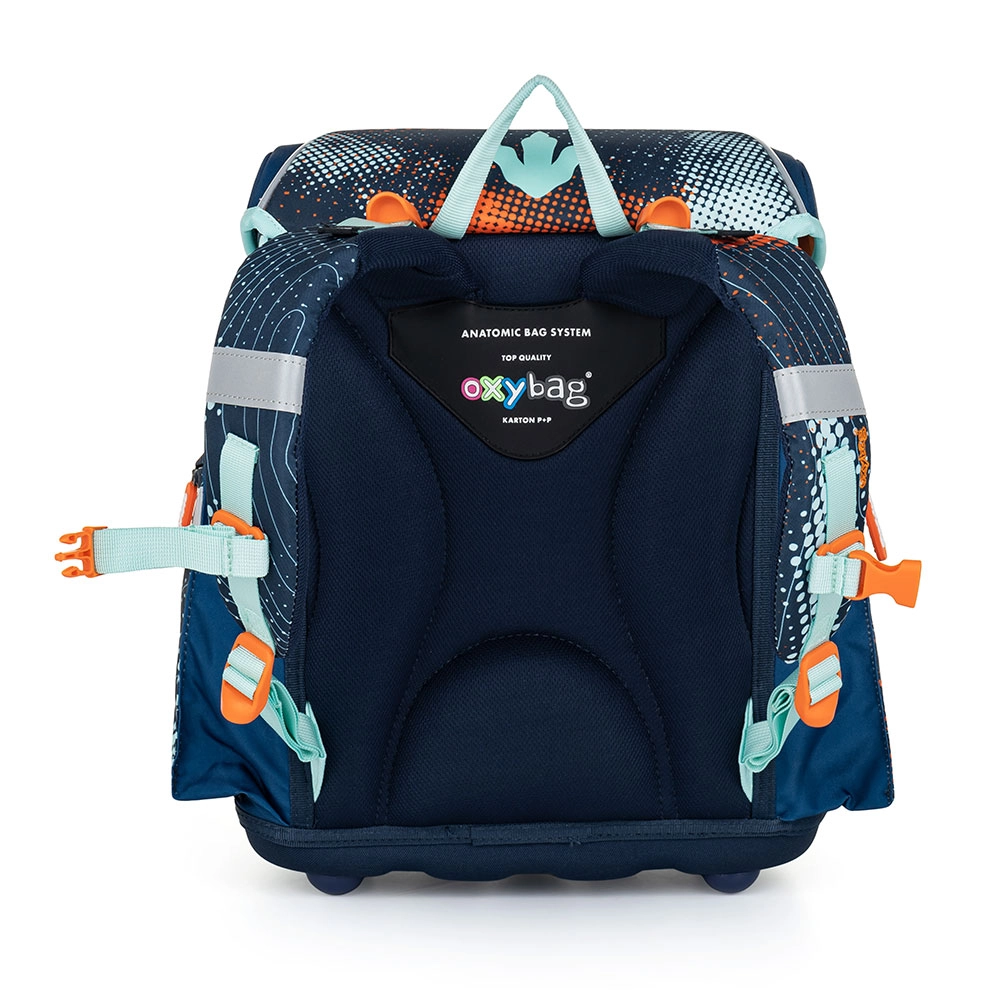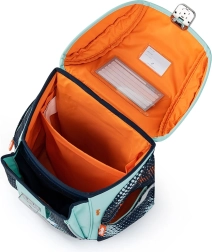 In de rugzak vind je een overzichtelijk intern verdeelsysteem en voldoende vakken voor boeken, schriften en tussendoortjes. Het ruime volume van 27 l en het draagvermogen van 8 kg kunnen de dagelijkse schooluitrusting aan. De set bevat ook een gymsack met trekkoorden en een etui met één laag, twee binnenflappen en elastische lusjes voor overzichtelijke organisatie van schrijfgerei.