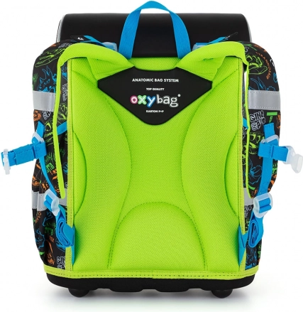 Schooltas: De Premium-schooltas is anatomisch gevormd en zorgt zo voor een correcte positie op de rug. De verstevigde rug en interne versteviging behouden de stabiele vorm van de tas. De voering is van aangenaam, ademend materiaal; de brede, gewatteerde schouderbanden zijn ontworpen om perfect aan te sluiten en het gewicht gelijkmatig over de schouders van het kind te verdelen. De tas bestaat uit één ruime kamer, waarin alle schoolspullen voor kinderen in groep 3 en 4 comfortabel passen. De bodem is van stevig materiaal en beschermt de inhoud tegen omvallen en uitvallen. Sluiting met een veiligheidsgesp. Het voorvakje is bedoeld voor een tussendoortje; diverse reflecterende elementen zorgen voor betere zichtbaarheid. Inhoud: 28 l. Draagvermogen: 8 kg. Gymzak: Schoolgymzak van kwalitatief materiaal. De zak sluit door het aantrekken van de koorden. Geschikt voor school, sport en andere vrijetijdsactiviteiten van kinderen. Etui: Enkelvoudig etui met twee kleppen, zonder vulling. Elastische lusjes voor het bevestigen van schrijfwaren. Op de binnenklep zit een transparant folie voor het lesrooster.