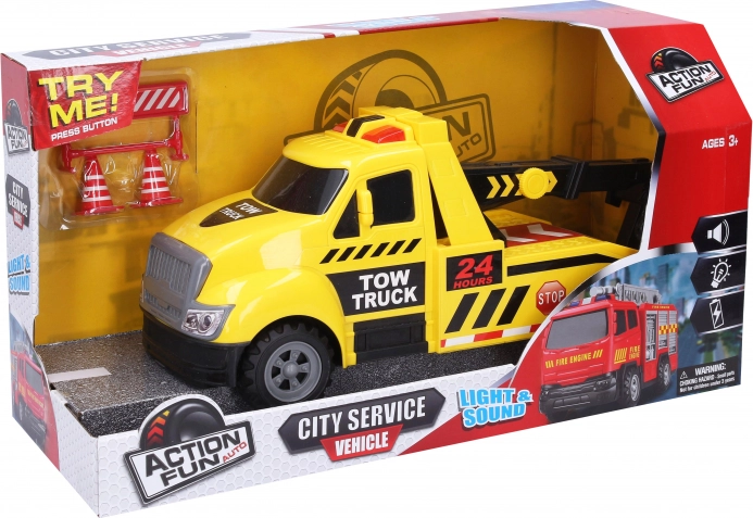Trek een verkeerd geparkeerde auto weg met behulp van de sleepwagen op traagheidsmechanisme, die is uitgerust met lichteffecten en geluidseffecten. Een geweldige speelgoedauto die elke jonge chauffeur vanaf 3 jaar zal bevallen.