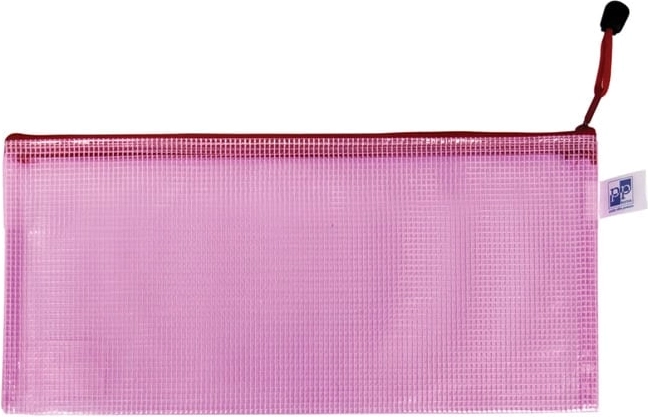 Praktische roze envelop met ritssluiting is ideaal voor het veilig opbergen van documenten, geld en papieren. Gemaakt van plastic en verstevigd met gaasstof voor extra duurzaamheid.