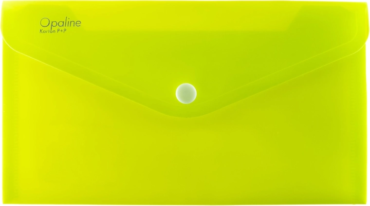 Het lichte en stevige DL Opaline mapje is ideaal voor orde op kantoor, op school en thuis. Polypropyleen met een dikte van 180 μm beschermt tegen kreukels en vuil, terwijl de drukknoop de inhoud veilig binnen houdt. De stijlvolle limoen‑groene kleur maakt snelle herkenning tussen andere documenten eenvoudig.