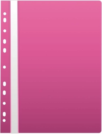 Deze snelhechter is de perfecte oplossing voor iedereen die zijn documenten overzichtelijk en veilig wil opbergen. De voorkant is transparant met een dikte van 120 micron, waardoor je de inhoud gemakkelijk kunt zien zonder te hoeven openen. De achterkant is felroze, ondoorzichtig en steviger met een dikte van 180 micron, wat zorgt voor duurzaamheid en stabiliteit. Er is een beschrijfbare strook beschikbaar, waarmee je de inhoud snel en eenvoudig kunt markeren. De capaciteit van de binding is tot 2 cm, zodat het een grotere hoeveelheid papier kan bevatten.