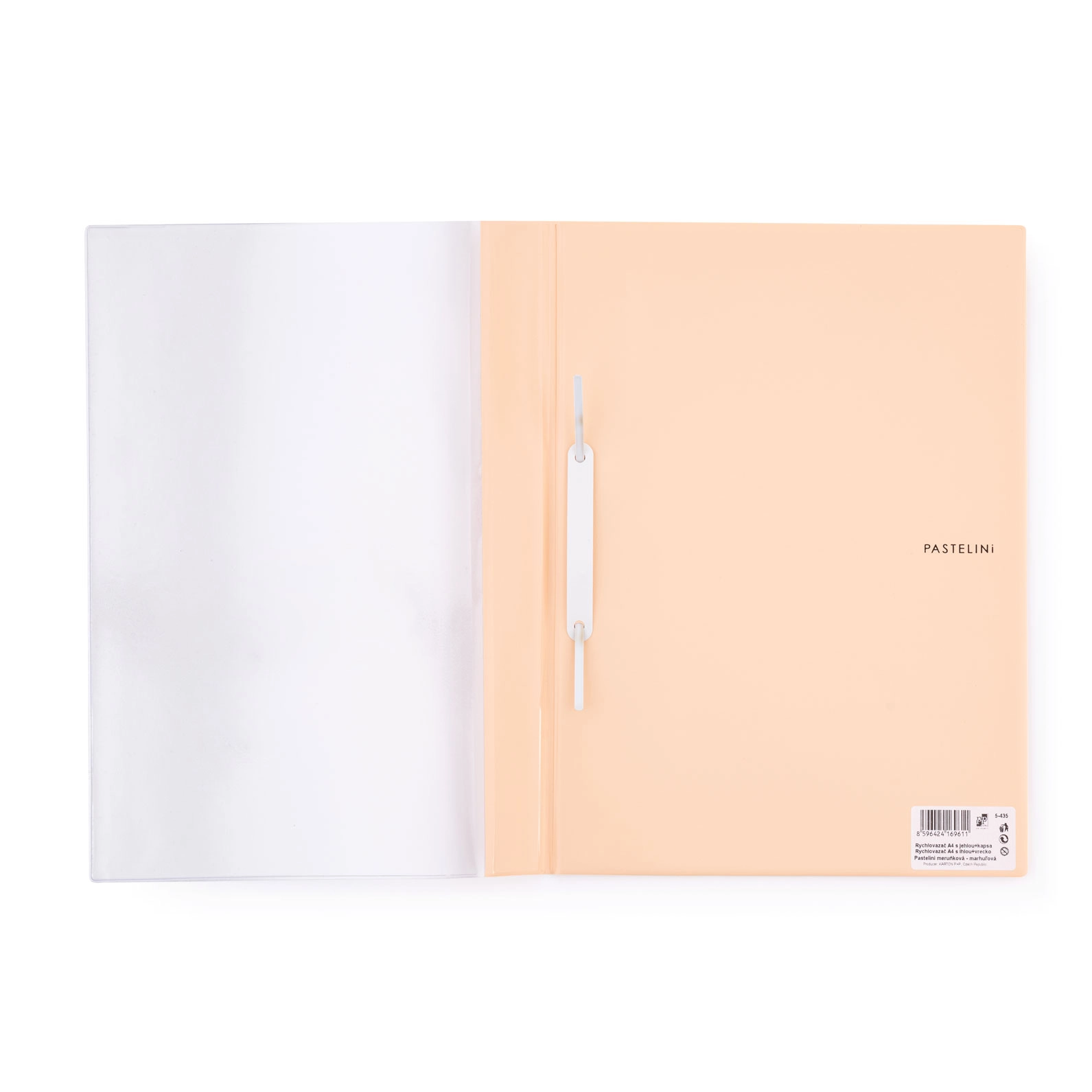 Houd je documenten overzichtelijk en stijlvol opgeborgen. De PASTELINI-snelbinder in abrikooskleur combineert functionaliteit en stijl – het transparante voorvak op de voorzijde maakt snelle personalisatie mogelijk, terwijl de stevige achterkaft zorgt voor comfortabel schrijven en presenteren onderweg.
