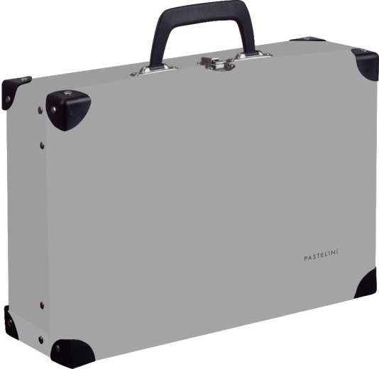 Praktisch en stijlvol PASTELINI-koffertje in grijs, ideaal voor dagelijks dragen en opbergen. Dankzij het duurzame laminaat, een metalen sluiting, kunststof handgreep en beschermde hoekbeschermers biedt het betrouwbare bescherming voor speelgoed, knutselspullen of schoolbenodigdheden.