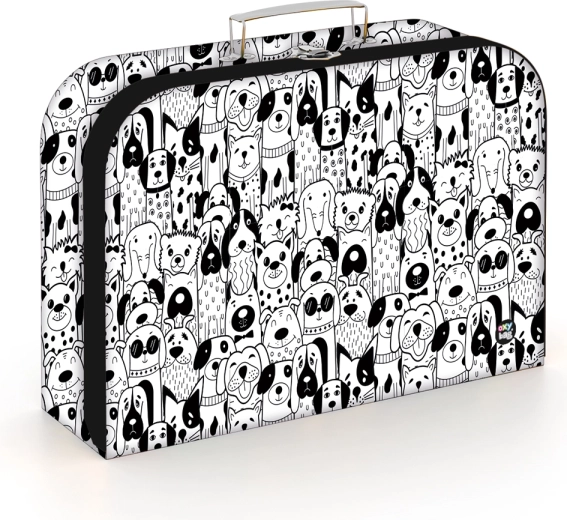 Praktisch en licht kinder koffertje met hondjesmotief, ideaal voor school en vrije tijd. Geschikt voor A4-formaat, gemaakt van stevig laminaat en dankzij het handvat gemakkelijk mee te nemen. Perfect voor schoolspullen, creatieve materialen en als opbergruimte voor speelgoed.
