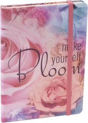 Stijlvol notitieboek A6 met harde kaft (2 mm), 96 gelijnde vellen en een praktische elastiekband voor veilig sluiten. De moderne BLOOM mix van motieven brengt inspiratie voor notities, planning en journaling.
