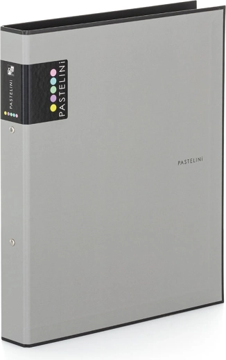 Elegante grijze PASTELINI-ordner in A4-formaat met een 2-ringsmechanisme en een gelamineerd oppervlak, ideaal voor school, kantoor en thuis. De rugbreedte van 4 cm biedt ruimte voor je documenten en de aantrekkelijke pastelafwerking geeft je materiaal een stijlvolle uitstraling.