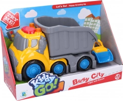 Met deze Kiddy-set van bouwvoertuigen beleven kinderen uren creatieve speelpret. De kiepwagen met aanhanger heeft bewegende deurtjes en effecten geactiveerd door een knop op het dak van de cabine, terwijl de bulldozer is uitgerust met een bewegende laadbak/schep voor laden en lossen. Dankzij de vrijlopende wielen zijn de voertuigen gemakkelijk te besturen, zelfs voor de kleinste chauffeurs.