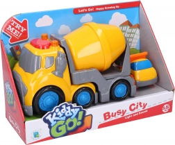 Leuke set werkvoertuigen voor de kleintjes: betonmixerauto met effecten 19,5 cm en mini kiepwagen 6,5 cm. Biedt licht- en geluidseffecten, een draaibare mixeroplegger, functionerend kiepen en vrijlopende wielen. Batterijen zijn bijgevoegd, geschikt vanaf 18 maanden.