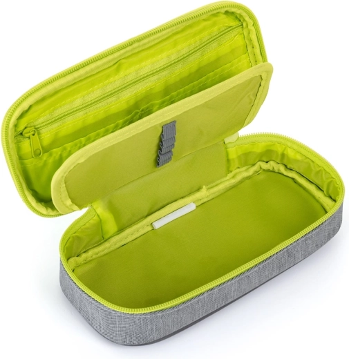 Praktische schooletui in modern fresh green design biedt uitstekende organisatie dankzij stevige ritsen, een ritsvakje en een klep met stevige lussen aan beide zijden. Onder de klep is voldoende ruimte voor losse opberging van schrijfwaren en kleine benodigdheden. Ideale keuze voor leerlingen van de onderbouw van het voortgezet onderwijs en oudere studenten.