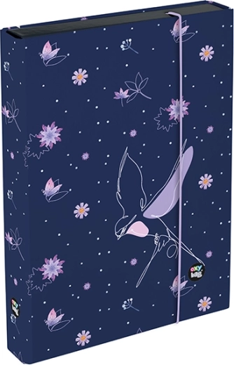 Deze doos voor schriften in A5-formaat is ideaal voor dagelijks gebruik van schoolbenodigdheden. Het heeft een stevige laminaatafwerking en een elastieken sluiting die ervoor zorgt dat de inhoud stevig is opgeborgen. De rugbreedte is 3,5 cm, wat voldoende ruimte biedt voor vele schriften en documenten.