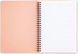 Dit ringblok in een abrikooskleurige pasteltint met dubbele spiraal is ideaal voor werk, studie en creatief gebruik. Het A5-formaat biedt voldoende ruimte voor je notities en ideeën.