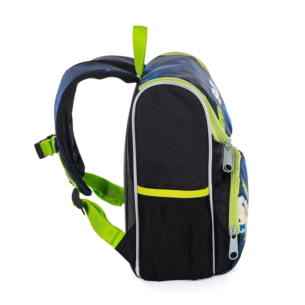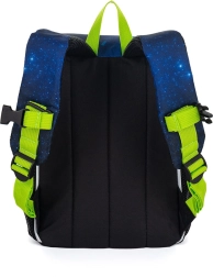Lichte en comfortabele kinderrugzak met SPACE-motief, ideaal voor kleine ontdekkers van 3–6 jaar. Voorzien van één ruime hoofdvak, een voorvak voor een tussendoortje en zijvakken voor een fles. Voor extra veiligheid heeft hij een borstriem voor betere fixatie en reflecterende elementen voor hogere zichtbaarheid.