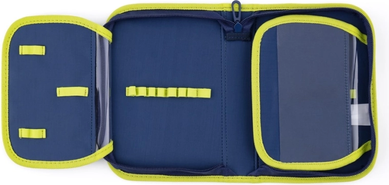Houd schoolspullen maximaal overzichtelijk. Deze etui met één compartiment en twee flappen is leeg, zodat je hem precies naar jouw behoefte kunt vullen – van potloden en pennen tot kleurpotloden en een liniaal. Dankzij de transparante folie binnenin heb je het lesrooster altijd in het zicht.