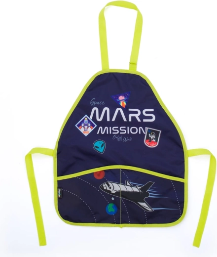 Het lichte en duurzame Space-schort is een geweldige hulp voor zowel schoolse beeldende vorming als creatief bezig zijn thuis. Dankzij de verstelbare sluiting rond de nek en de striklinten in de taille zit het comfortabel en beschermt het kleding betrouwbaar tegen verf, lijm en andere vervuiling. Het materiaal van 100% polyester is gemakkelijk schoon te maken en droogt snel.