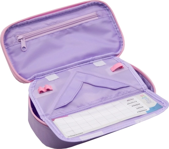 - klep met 6 lussen voor schrijfwaren, afsluitbaar vakje met rits, vak voor liniaal, ruimte voor losse opberging