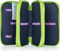 De etui is uitgerust met 40 elastische lussen voor potloden, pennen, kleurpotloden en kleine schoolspullen. Dankzij de stevige rits met grote trekkers opent en sluit hij gemakkelijk, en het transparante vak voor het weekrooster maakt de organisatie van de schoolweek eenvoudiger.