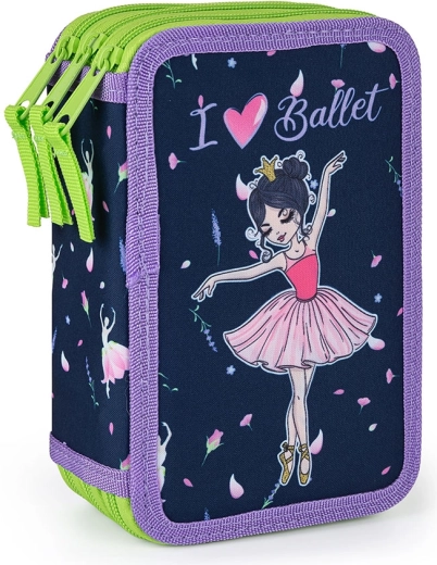 Deze praktische en duurzame driedelige schooletui zonder vulling houdt alles netjes op zijn plek en helpt kinderen hun schoolspullen perfect geordend te houden. Het ballerina-motief zal elke dansliefhebber bekoren en geeft schooldagen extra flair.