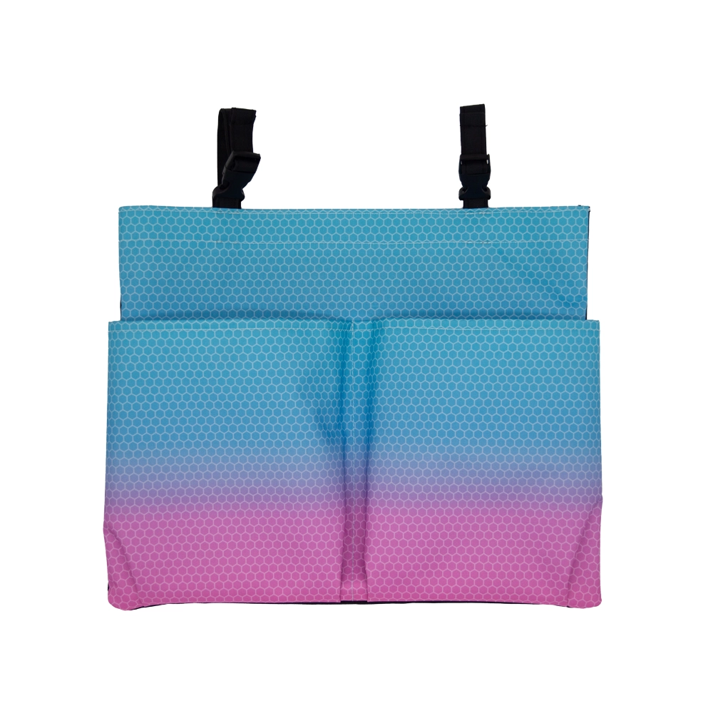Schoolbankorganizer. In het hoofdvak passen schriften en boeken tot A4-formaat. In de twee voorvakken (22 x 18 cm) passen gemakkelijk overige schoolspullen. Sluiting met gesp.