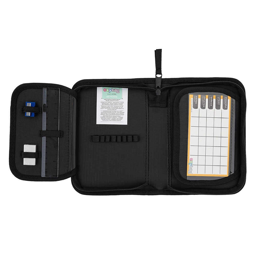 Eenvaks schooletui met 2 flappen uit de UNICOLOR-serie, leeg, bevat 25 elastische lussen voor het opbergen van schrijfgerei. Op de binnenflappen zitten transparante hoesjes voor het lesrooster.