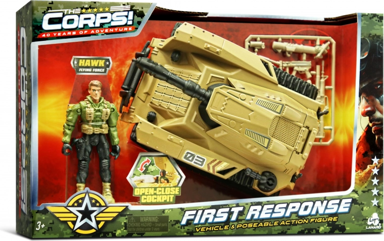 Ontdek de spannende wereld van The Corps! met deze aanvalseenheid. De set bevat een aanvalsvoertuig en een soldatenfiguur, ideaal voor jonge liefhebbers van actiespellen.