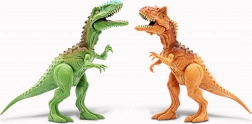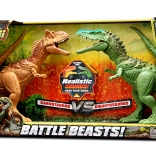 Ga op prehistorisch avontuur met Primal Clash! Dino gevecht set Carnotaurus vs Gigantosaurus. Deze set bevat twee interactieve dinosaurusfiguren met beweegbare kop en kaken en realistische geluidseffecten.