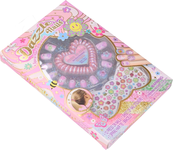 Opplakbare nagels met stickers - bloemetjes. Bevat opplakbare nagels, stickers en een haarelastiek. De nagels blijven zitten na aandrukken, lijm is niet nodig.