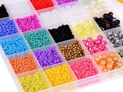 Deze rijk uitgeruste set is ideaal voor het maken van armbanden, kettingen, hangers en andere accessoires. Dankzij het brede palet aan tinten blauw, turquoise, paars, roze, groen en wit en de verschillende kralenvormen creëer je originele accessoires voor elke gelegenheid. De organizer met vakjes houdt alles overzichtelijk – kralen raken niet door elkaar en werken gaat snel en comfortabel.