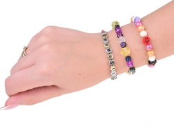 Een breed palet aan tinten en vormen, inclusief letterkralen, stelt je in staat unieke armbanden, kettingen en hangers te maken, precies zoals jij het wilt.