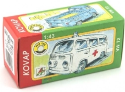 Retro ambulance VW op schaal 1:43 van het gerenommeerde Tsjechische bedrijf Kovap. Perfect voor kleine verzamelaars en liefhebbers van historische modellen.