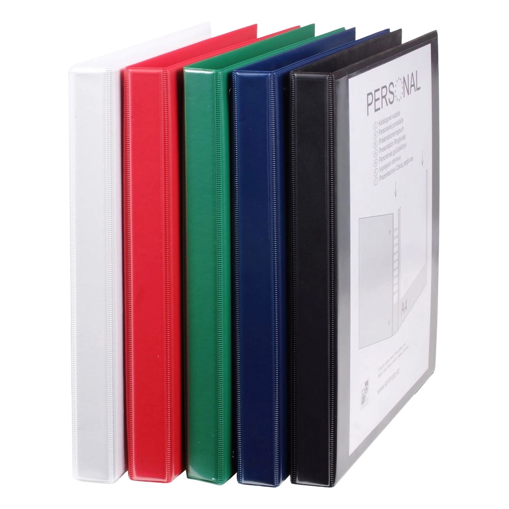 Praktische catalogusmap in A4-formaat met een stevige constructie en een vier-rings mechaniek in de vorm van de letter D. De voorzijde en de rug hebben transparante insteekhoezen voor het eenvoudig invoegen van een titelblad en ruglabel. Ideaal voor professionele presentaties, archivering van documenten en gebruik op school of kantoor.