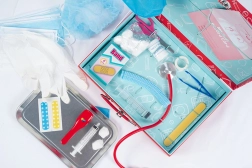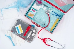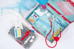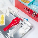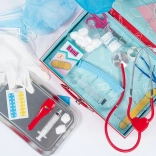 De dokterskoffer bevat 27 delen medisch apparatuur voor realistisch rollenspel.