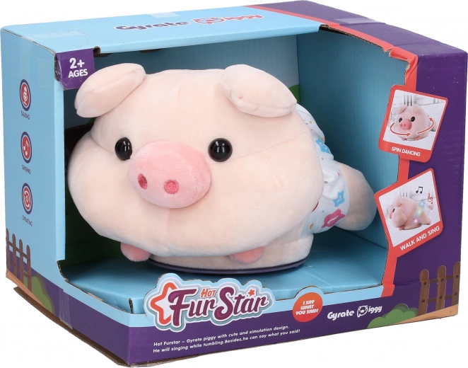 Dit interactieve varkentje biedt dubbel zoveel plezier. Met zijn licht- en geluidseffecten bezorgt het kinderen onvergetelijke speelmomenten. Druk op de knop aan de linkerkant en het varkentje rijdt met een melodie, terwijl het bij een volgende druk herhaalt wat je zegt, en dat allemaal in beweging! Het varkentje kan eenvoudig worden in- en uitgeschakeld met de schakelaar aan de onderkant.