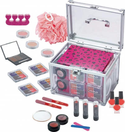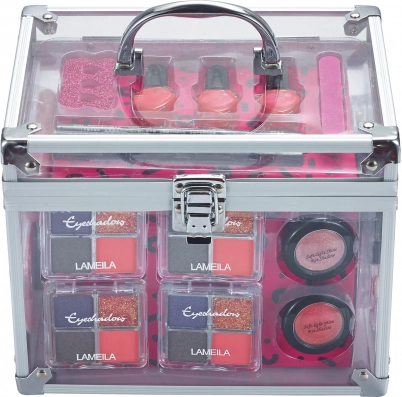 Stijlvol kinder-make-upkoffertje van 22 cm dat kleine dametjes blij maakt met een complete set voor de eerste make-up en salonspel. Bevat een kleurrijke set accessoires, waaronder nagellakken, oogschaduw, lipgloss en een handig spiegeltje – alles voor veilig en leuk experimenteren.