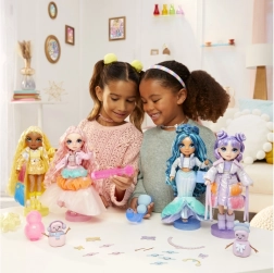 Ontdek winterse magie met de pop Sunny Madison uit de RAINBOW HIGH Winter Wonderland-collectie. De stijlvolle gele outfit krijgt, zodra je water aan de "sneeuw" toevoegt, een luchtige textuur en onthult nieuwe kleuren – de transformatie is eenvoudig, spectaculair en steeds opnieuw te herhalen. Ideaal voor jonge stylisten en verzamelaars die houden van mode-experimenten en wintersfeer.