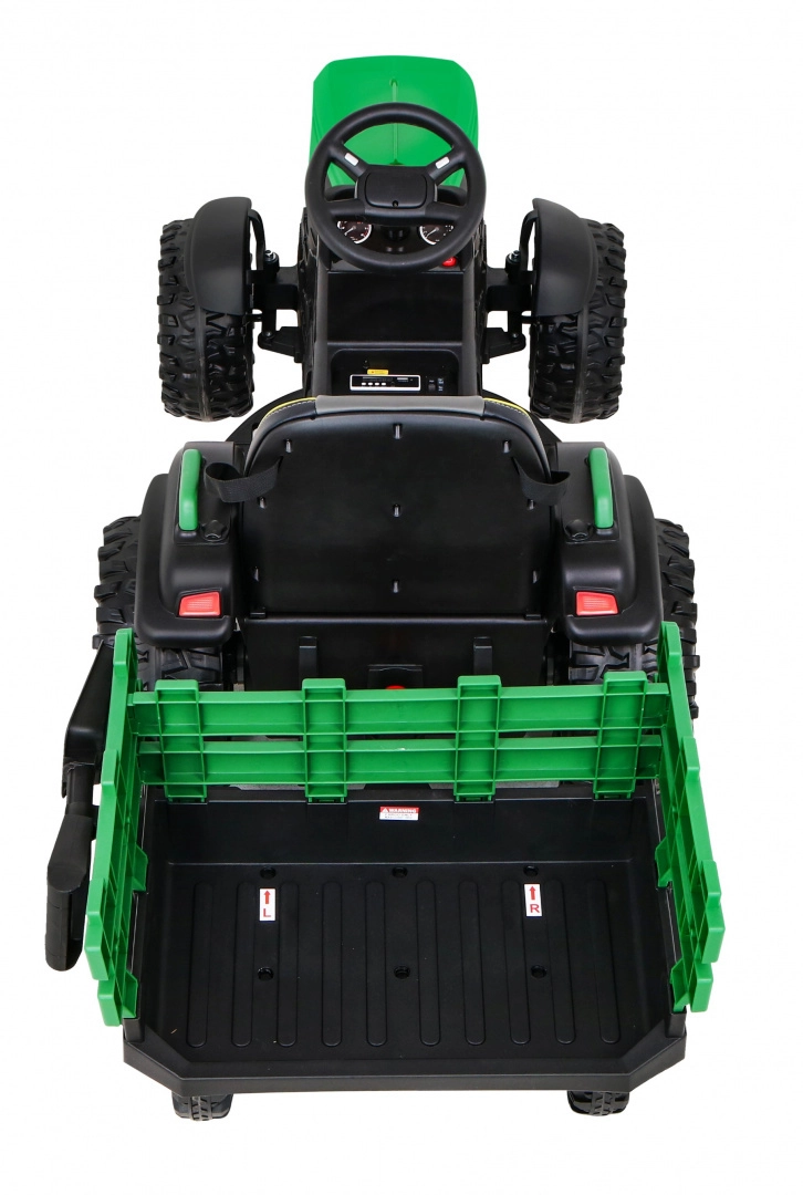 De Titanium Z trekker in het groen is een stijlvolle en krachtige ride-on voor kleine boeren. Twee sterke motoren en een 12 V/7 Ah-accu zorgen voor een soepele rit, terwijl de grote EVA-wielen met diep profiel voor zekerheid zorgen op gras en stoep. Inclusief een afkoppelbare aanhanger voor het vervoeren van speelgoed en spulletjes.