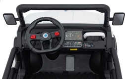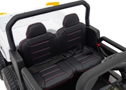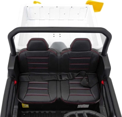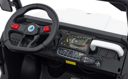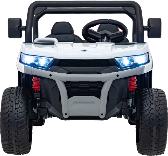 Ouders waarderen de volledige controle dankzij de 2,4 GHz afstandsbediening met noodstopknop, kinderen waarderen het comfort van het zitje van eco-leer met zitafmetingen 41×21×27 cm, de zachte EVA-banden 27×11 cm, realistische geluiden in het stuur en heldere LED-koplampen. Het maximale draagvermogen is 50 kg, waardoor ook oudere kinderen kunnen genieten.