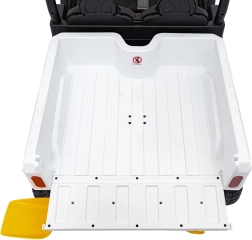 De achterste laadruimte met elektrische kieper en openklapbare klep maakt het vervoeren van speelgoed en materiaal mogelijk – realistisch plezier zoals bij een echte bedrijfswagen.