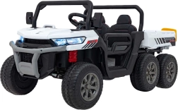 Ontdek de robuuste kinderwagen Farmer Truck Speed 900 in het wit – een zeswielige offroad‑buddy met krachtige 4×45 W motoren, 12 V/10 Ah accu, EVA-wielen en LED-verlichting. Biedt vloeiende start, twee snelheden vooruit/achteruit, 2,4 GHz afstandsbediening met STOP, een luxe zitje van eco-leer en een multimediapaneel MP3/USB/AUX/Bluetooth. De achterste kiepbak met elektrische kieper en openklapbare klep tillen het speelplezier naar een hoger niveau.