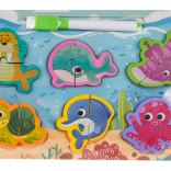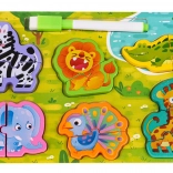 - Dubbelzijdig houten bord, uitwisbare stift met gum, houten puzzel met dieren