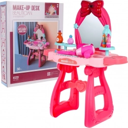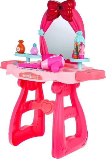 Stevige poten met hartjes, een grote spiegel en schattige details in roze tinten maken van de kaptafel een veilige en mooie speelplek.