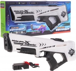 Leuk elektrisch waterpistool voor kinderen vanaf 6 jaar met en 2-in-1-modus – schieten kan op accu of handmatig. Duurzame uitvoering, eenvoudig vullen via het boventankje en LED-verlichting voor actievolle watergevechten, ook in de schemer.